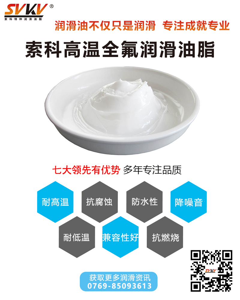 索科SVKV高溫全氟潤(rùn)滑油脂是由聚四氟乙烯(PTFE)并添加特種抗腐蝕添加劑精制而成的白色全氟聚醚潤(rùn)滑脂,專用于高溫、高負(fù)載、化學(xué)腐蝕環(huán)境中的軸承、齒輪、頂針以及要求終生潤(rùn)滑的部件,抗氧化、低揮發(fā)、不結(jié)焦、不積碳、抗腐蝕耐磨損、抗擠壓性好,特別是在極度高溫和惡劣環(huán)境下的使用。一般可使產(chǎn)品壽命延長(zhǎng)10—60倍。