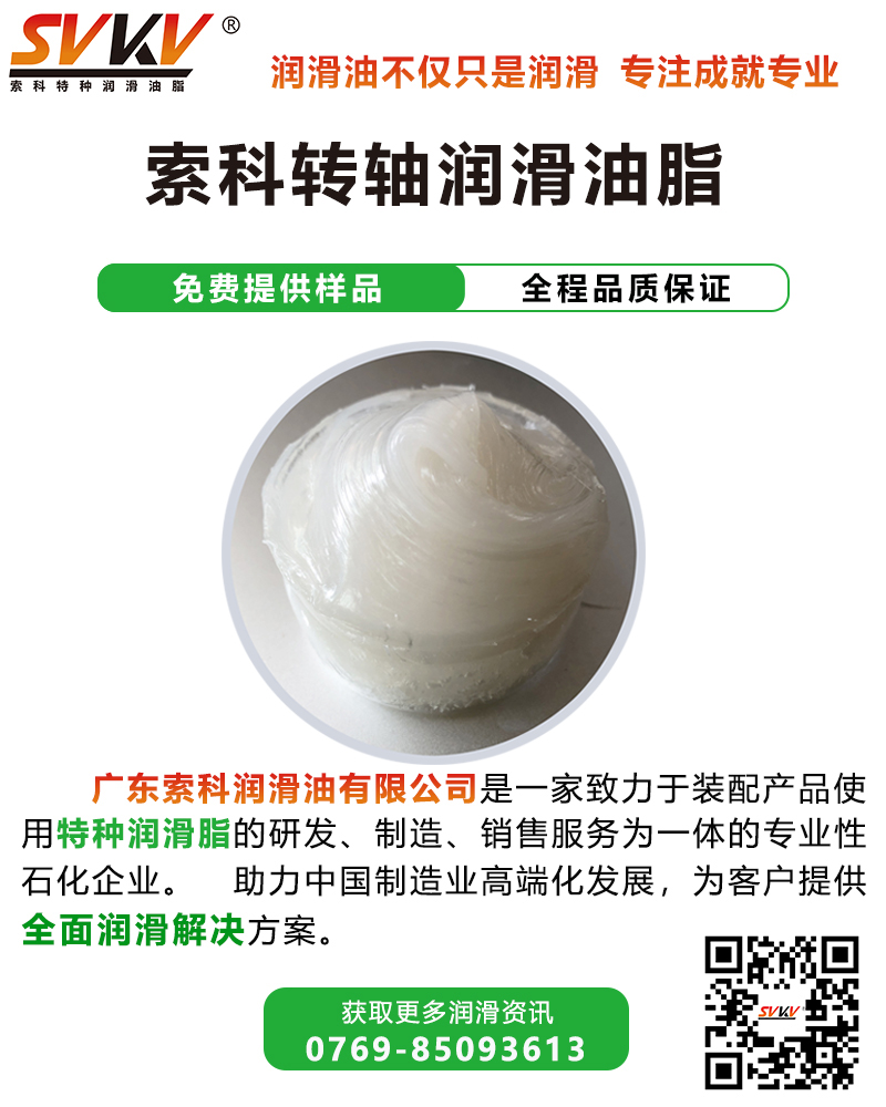 廣東索科潤滑油有限公司是一家致力于裝配產(chǎn)品使用特種潤滑脂的研發(fā)、生產(chǎn)、定制、服務(wù)為一體的專業(yè)性石化企業(yè)。致力為制造業(yè)客戶,提供專業(yè)的選油方案,協(xié)助客戶解決產(chǎn)品裝配時(shí)的潤滑難題,還可根據(jù)客戶特殊需求訂做適合的潤滑油品。有效提高產(chǎn)品性能、減低維護(hù)成本,索科助力制造業(yè)高端化發(fā)展!