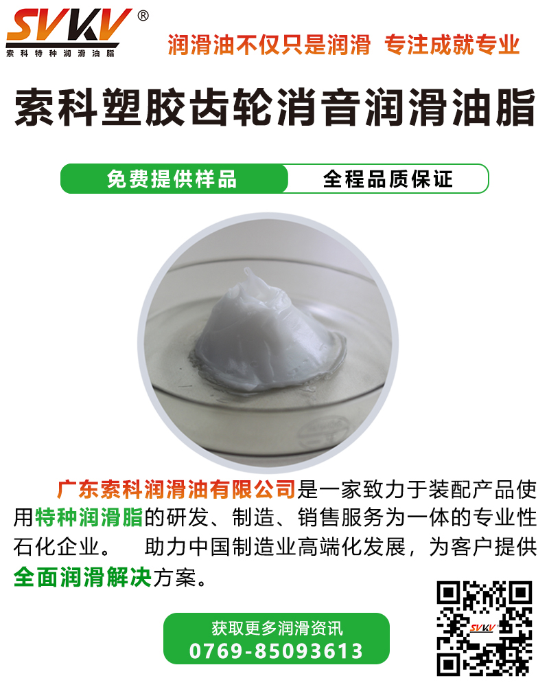 索科SVKV塑膠齒輪消音潤滑油脂正是這樣一款專為塑膠齒輪而研制的齒輪潤滑油脂,完美適配硒鼓齒輪。索科SVKV塑膠齒輪消音潤滑油脂選用高性能基礎(chǔ)油,并添加多種高效抗氧化、抗腐蝕等添加劑精制而成,是專為各種塑膠齒輪、傳動部位而研制的齒輪潤滑脂,能有效減少硒鼓齒輪磨損,降低噪音,并達到延長其使用壽命的效果。