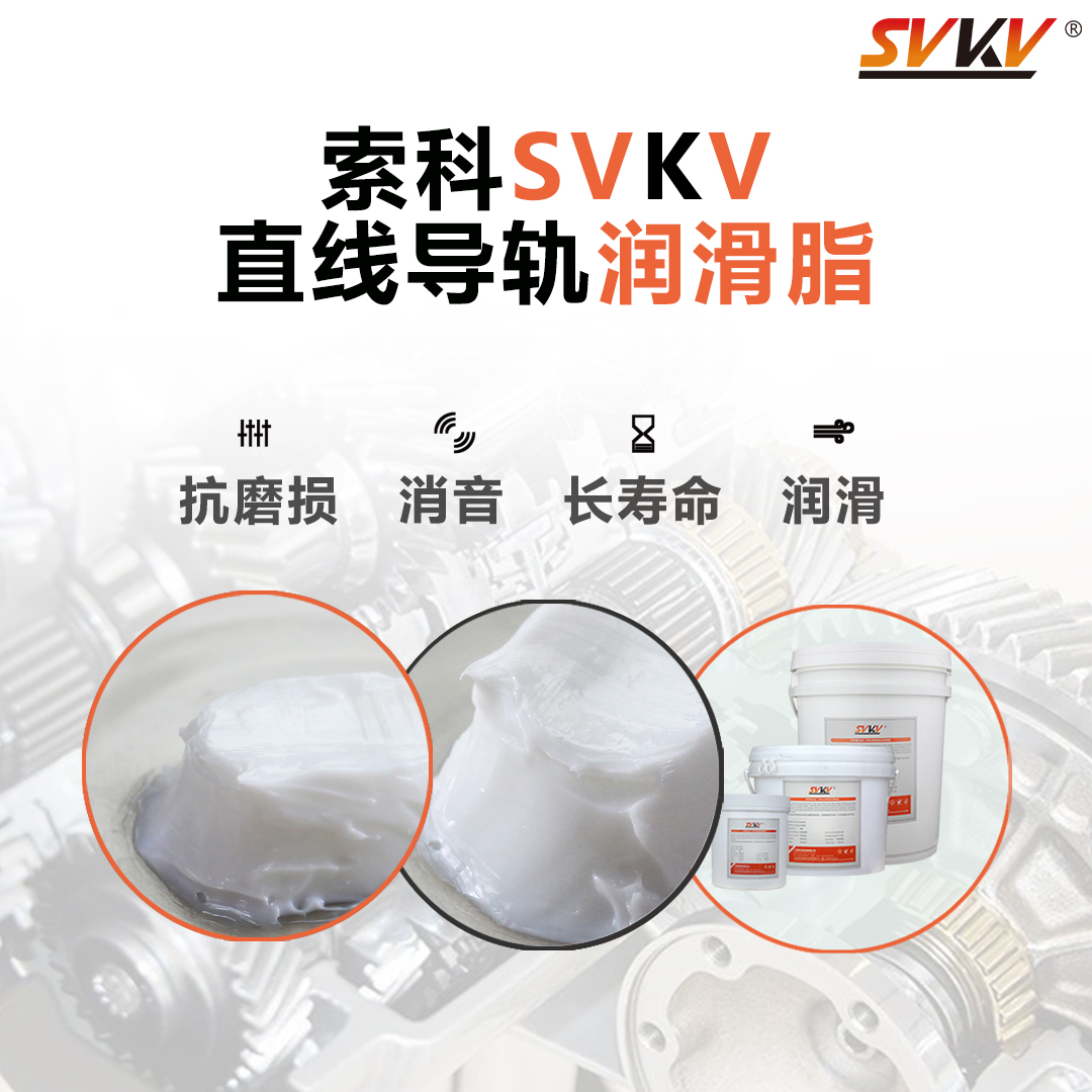 那么直線導軌該選擇哪款潤滑脂呢?索科技術向大家推薦索科SVKV 620系列直線導軌潤滑脂,由全合成基礎油和高性能復合稠化劑精煉而成,內含特殊的(EP)抗磨聚合物,具有優(yōu)良的高速潤滑性和承載能力。SK系列導軌油脂還具低摩擦系數,提高絲桿的效率,并延長使用壽命;優(yōu)異低溫防卡性能,起動扭矩極小,不凍結不會龜裂;抗微動磨損保護,可降低滑動摩擦微震動產生的噪聲等特點。