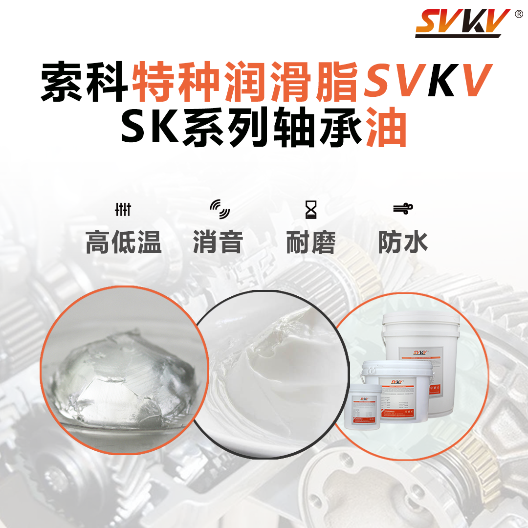 軸承部位的潤滑是為了減小摩擦、降低溫度、延長使用壽命和防止部件磨損。軸承等高速旋轉部件,通常選擇油脂潤滑。使用潤滑油脂時,需要在潤滑部位建立一個潤滑膜,使摩擦表面在液體層的滑動中減少摩擦因素。涂油的方法一般有噴、刷、滴等形式。涂抹軸承時,需要在潤滑蓋板上注入潤滑脂或者油,并且經過使用一段時間后,需要將舊潤滑脂或者油及時清除,再重新涂敷新的潤滑劑。推薦索科SVKV SK486/0系列軸承油。采用特殊的全合成油和獨特的添加劑制成。