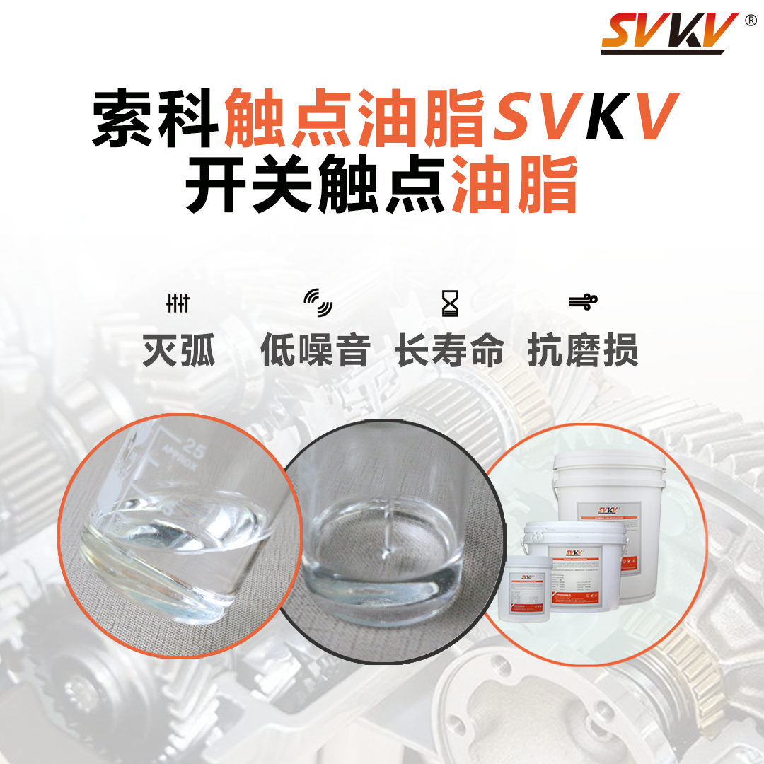 推薦索科SVKV SK909系列開(kāi)關(guān)觸點(diǎn)油脂。專(zhuān)為電子電器的旋轉(zhuǎn)和滑動(dòng)開(kāi)關(guān)的防電弧、抗氧化、抗磨損和保護(hù)而設(shè)計(jì),能有效降低接觸電阻和溫升,防止積碳的產(chǎn)生。